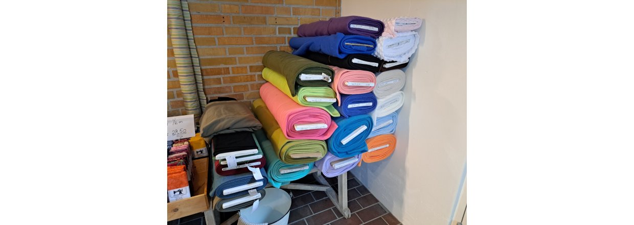 Du finder også et stort udvalg af materialer og mønstre i butikken.